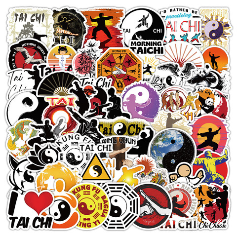 50PCS Cartoon Tai Chi Kultur Graffiti PVC Wanda uf kleber National Kung Fu Kreatives wasserdichtes dekoratives Telefon